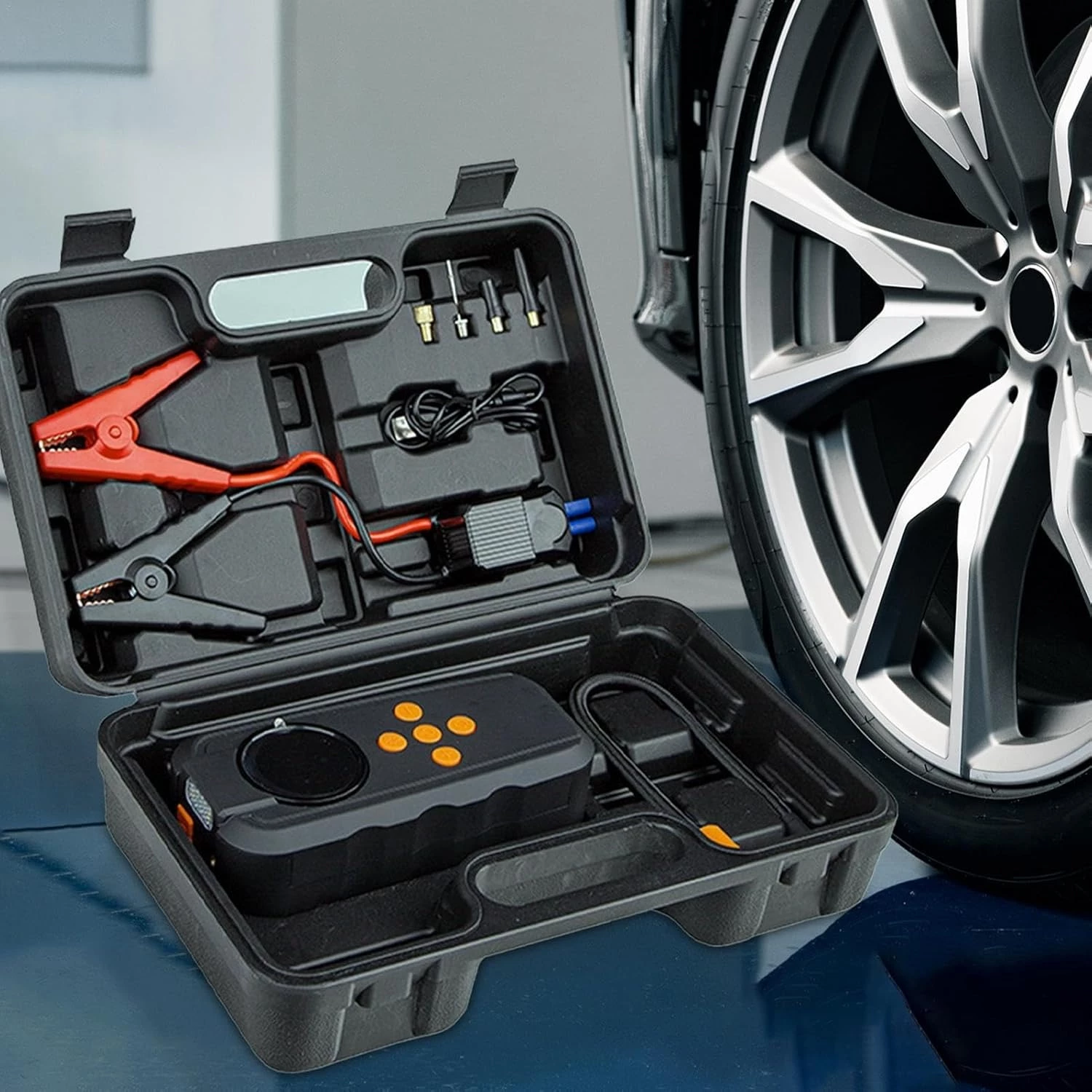 شاحن بطارية ونافخ إطارات 4 في 1